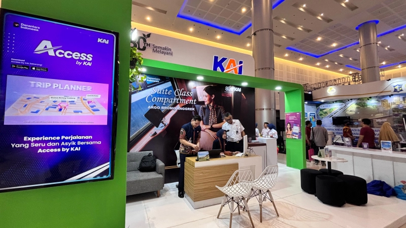 Selain potongan harga tiket, Booth KAI juga menghadirkan berbagai informasi layanan, inovasi digital Access by KAI, hingga aktivitas interaktif yang bisa dinikmati pengunjung Jatim Fest.