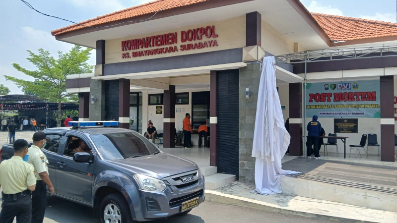 Surabaya – Rumah Sakit Bhayangkara HS Samsoeri Mertojoso Surabaya menerima empat jenazah korban ambruknya musala Pondok Pesantren (Ponpes) Al Khoziny, Buduran, Sidoarjo.