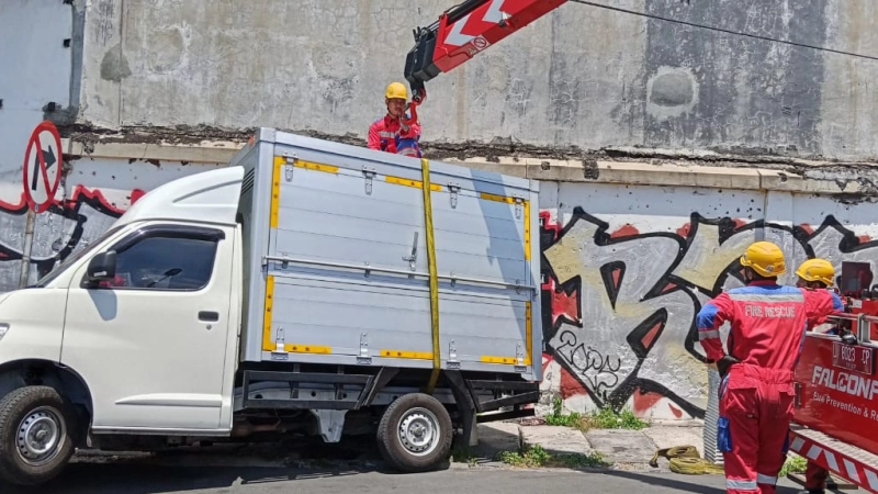 Beruntung, tidak ada korban dalam insiden ini. Proses evakuasi berjalan lancar dan dinyatakan selesai pada pukul 10.28 WIB. Mobil yang bermuatan sekitar 5–6 kardus air kemasan tersebut berhasil diangkat dalam kondisi aman.