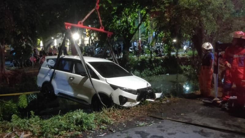 Proses evakuasi kendaraan berwarna putih tersebut berlangsung selama hampir dua jam. Mobil akhirnya berhasil diangkat dan situasi dinyatakan kondusif pada pukul 02.08 WIB.
