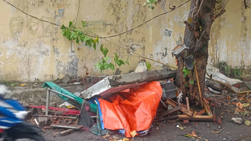 “Saat itu cuaca mendung dan anginnya kencang sekali. Tiba-tiba pohon di dekat tembok roboh, lalu temboknya ikut ambruk dan menimpa korban,” tutur Ulum.