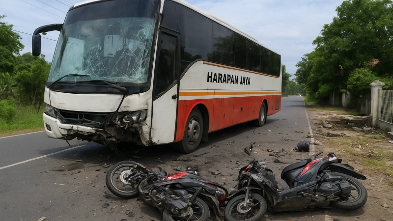 Tulungagung – Kecelakaan maut terjadi di Jalan Raya Nasional Pahlawan, Desa Ketanon, Kecamatan Kedungwaru, Kabupaten Tulungagung, Jumat (31/10/2025) sekitar pukul 12.20 WIB. Sebuah bus Harapan Jaya menabrak dua sepeda motor hingga mengakibatkan dua perempuan meninggal dunia dan satu pria kritis.