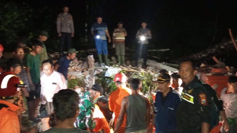 Trenggalek – Tanah Longsor mengubur sebuah rumah di Dusun Banaran, Desa Depok, Kecamatan Bendungan, Kabupaten Trenggalek, Minggu (2/11/2025). Lima penghuni rumah menjadi korban, dua orang diantaranya ditemukan dalam kondisi tak bernyawa.