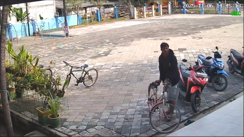 Sekitar pukul 14.45 WIB, seorang pria datang dengan sepeda angin tua. Roda sepedanya berderit pelan lalu berhenti di halaman masjid. Gerak-geriknya tampak biasa saja, seolah hendak beribadah salat seperti yang lain. Mengenakan jaket hodie gelap dan bercelana pendek, pelaku tanpa canggung memarkir sepeda anginnya di samping deretan motor jemaah.