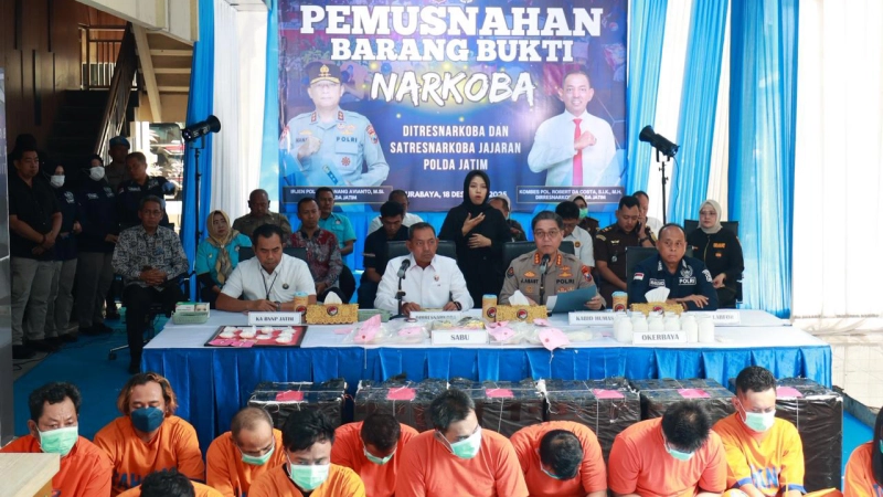 Ia menambahkan, pemusnahan barang bukti narkoba telah dilakukan beberapa kali sepanjang tahun 2025. Pada Juni lalu, Polda Jatim memusnahkan 49 kilogram sabu, 2.860 butir ekstasi, serta 5.688.600 butir obat keras. Selain itu, pemusnahan bersama Bareskrim Polri juga dilakukan terhadap 85,3 kilogram sabu.