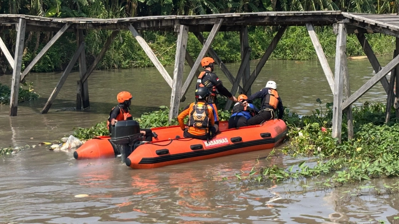 Memasuki hari ketiga pencarian pada Jumat (10/4/2026), tim gabungan membagi operasi menjadi dua metode, yakni pencarian darat dan air. Tim air mengerahkan enam unit pencarian untuk menyisir aliran sungai hingga radius sekitar 6 kilometer.